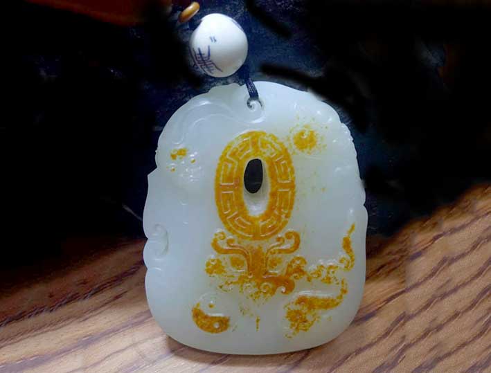 蒋喜玉雕作品《乾坤和谐龙凤对牌》