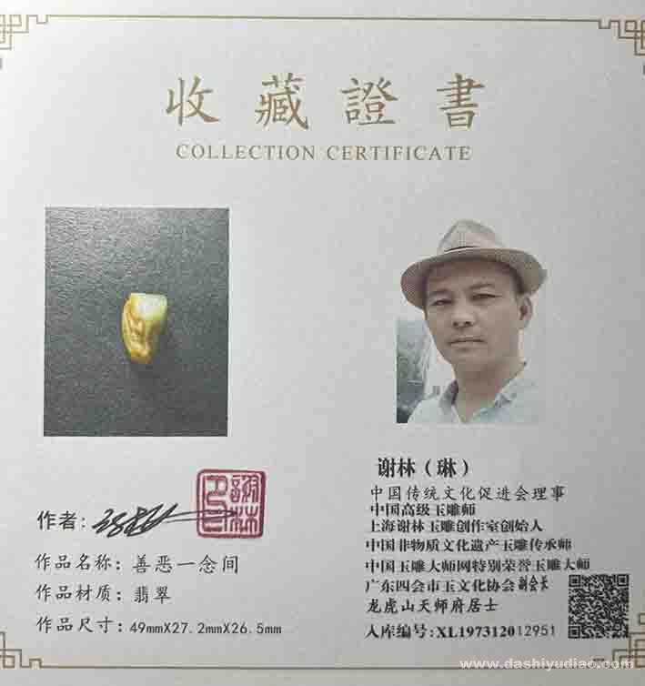 谢林玉雕作品《善恶一念间》