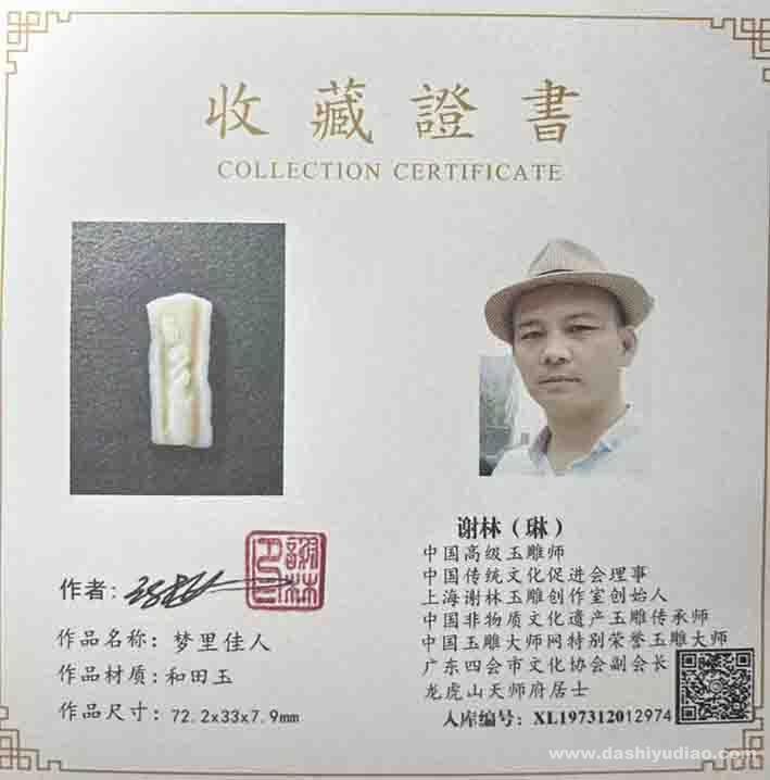 玉雕大师谢琳(谢林)被授予中外友好与文化宣传大使