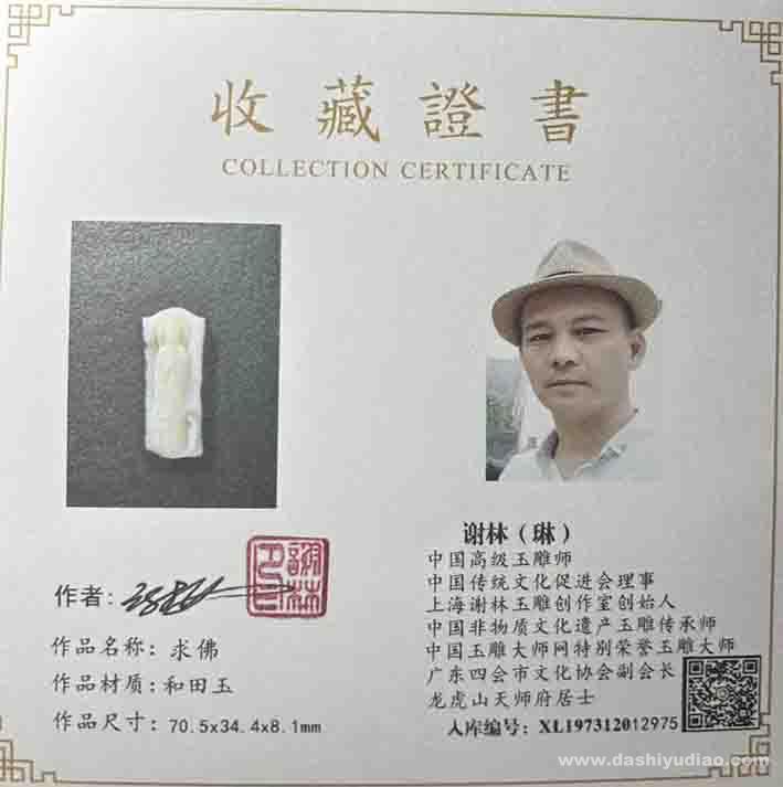 玉雕大师谢琳(谢林)被授予中外友好与文化宣传大使