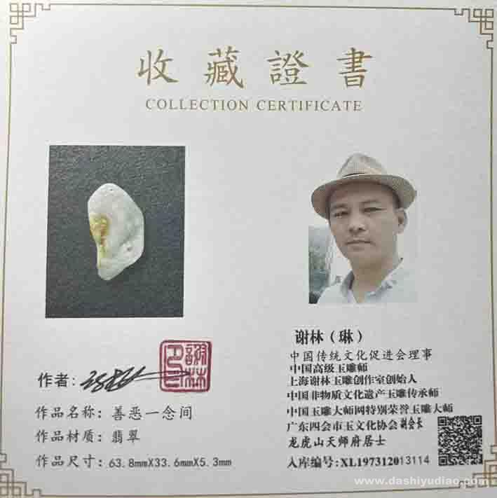 谢林玉雕作品《善恶一念间》
