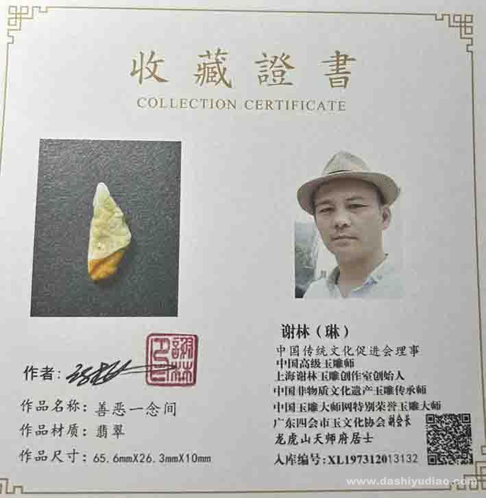 谢林玉雕作品《善恶一念间》