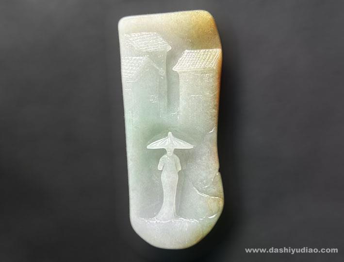 谢林玉雕作品《烟雨江南》