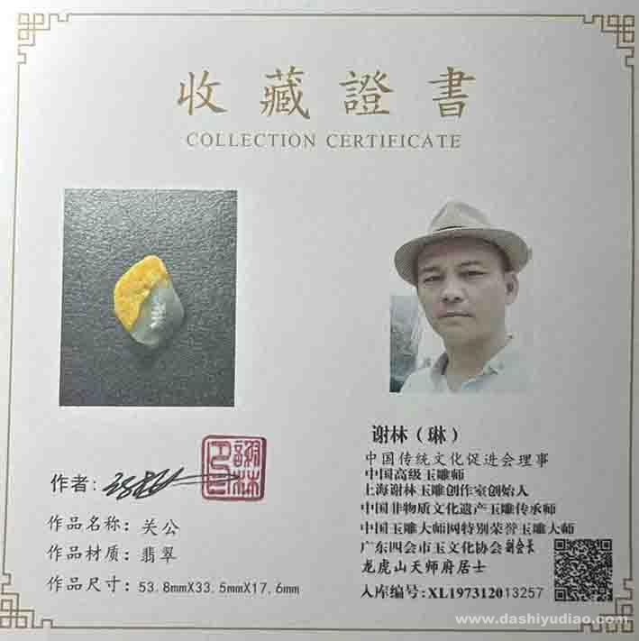 谢林玉雕作品《关公》