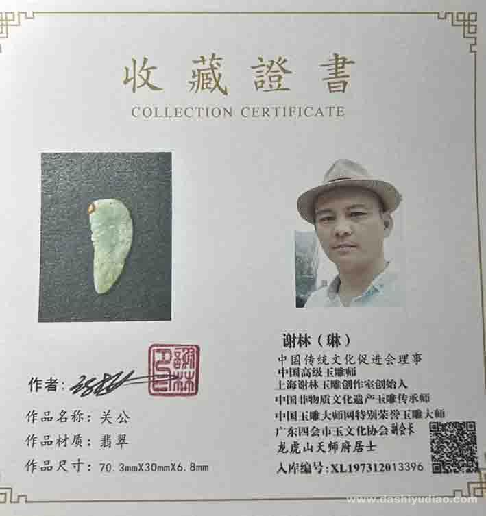 谢林玉雕作品《关公》