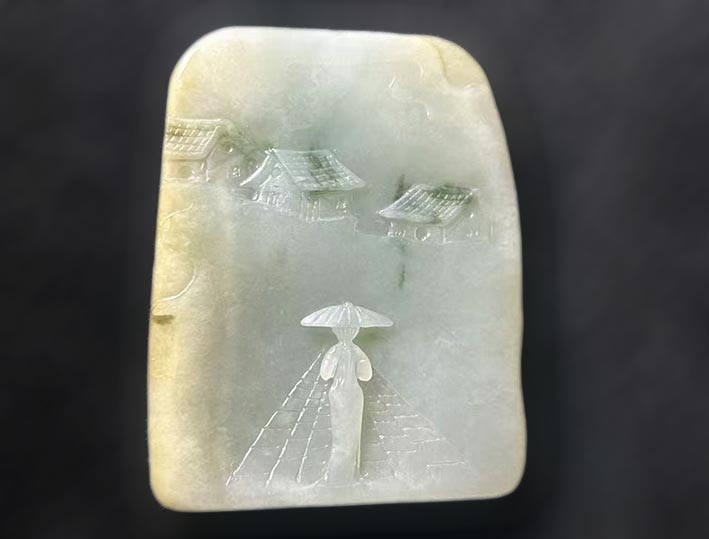谢林玉雕作品《烟雨江南》